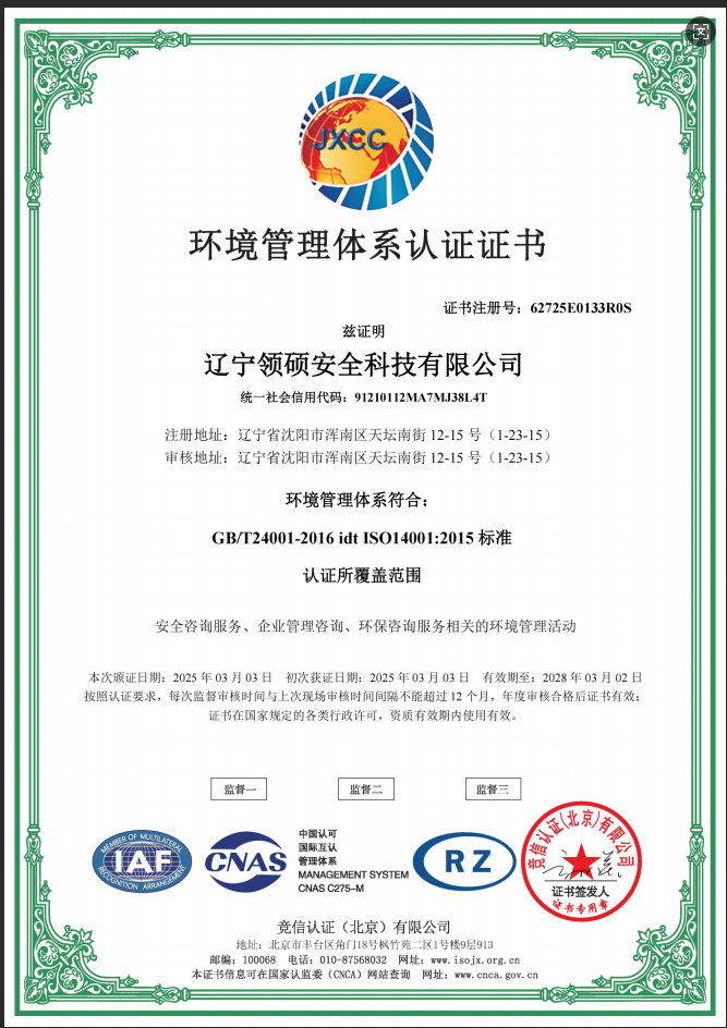 遼寧領(lǐng)碩安全科技有限公司位于遼寧省沈陽(yáng)市渾南區(qū)天壇南街12-15號(hào),注冊(cè)資金300萬(wàn)。主要經(jīng)營(yíng)范圍為遼寧省范圍內(nèi)的安全環(huán)保咨詢,生產(chǎn)安全事故應(yīng)急預(yù)案技術(shù)服務(wù)、企業(yè)雙重預(yù)防機(jī)制建立、履職能力評(píng)估、企業(yè)科研項(xiàng)目安全部分服務(wù)等的技術(shù)服務(wù)機(jī)構(gòu)。現(xiàn)有員工12人,其中包括5名遼寧省級(jí)安全生產(chǎn)專家。成立于2022年4月18日,在盤(pán)錦市成立至今已經(jīng)為30余家企業(yè)提供了安全環(huán)保技術(shù)咨詢。 業(yè)務(wù)范圍包括:技術(shù)服務(wù)、技術(shù)開(kāi)發(fā)、技術(shù)咨詢、技術(shù)交流、技術(shù)轉(zhuǎn)讓、技術(shù)推廣,安全咨詢服務(wù),環(huán)保咨詢服務(wù),標(biāo)準(zhǔn)化服務(wù),企業(yè)管理咨詢,科技中介服務(wù),工程管理服務(wù),特種作業(yè)...查看更多